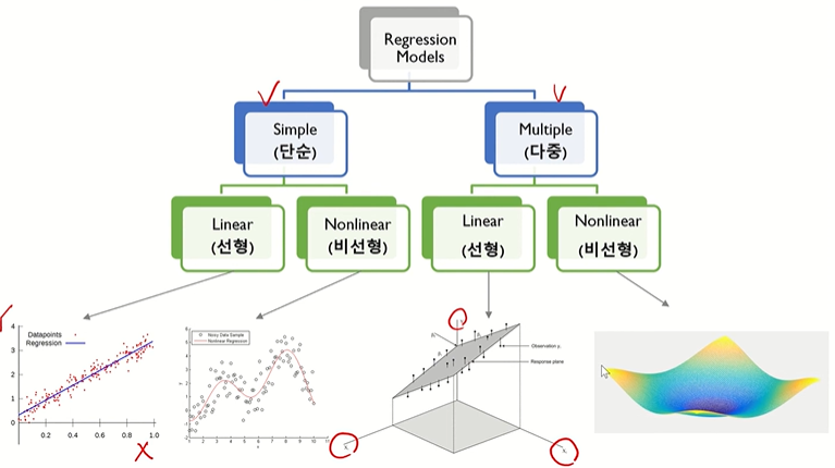 개요○ 선형회귀모델 1 ● 선형회귀모델 개요 ● 선형회귀모델 가정○ 선형회귀모델 2 ● 파라미터 추정(최소제곱법)○ 선형회귀모델 3 ● 파라미터 추론(구간추정, 검정)○ 선형회귀모델 4 ● 결정계수(R^2) ● 분산분석선형회귀모델 1 - 선형회귀모델 개요[변수 사이의 관계]○ X변수(원인)과 Y변수(결과) 사이의 관계 ● 확정적 관계: X변수만으로 Y를 100% 표현(오차항 X) - Y = f(X) e.g. 힘 = f(질량, 가속도), 주행거리 = f(속도, 시간) ● 확률적 관계: X변수와 오차항이 Y를 표현(오차항 O) - Y = f(X) + ε e.g. 반도체 수율 = f(설비 파라미터들의 상태, 온도, 습..